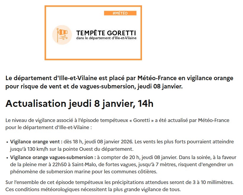 Nous vous invitons à suivre l’évolution de la situation et des prévisions sur https://vigilance.meteofrance.fr/fr/ille-et-vilaine
